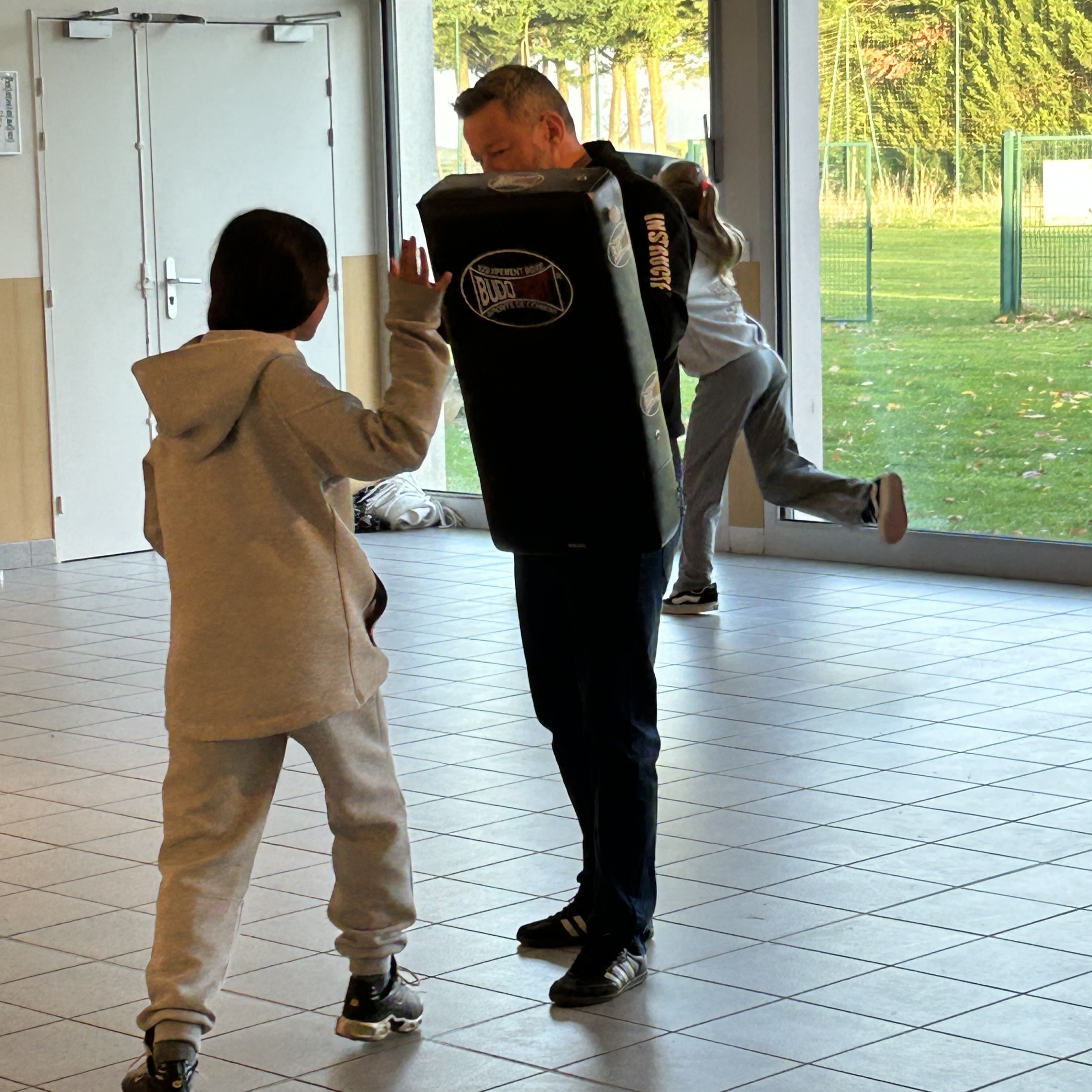 Les jeunes ont ensuite bénéficié d'une initiation au self défense avec deux formateurs de l'Amicale Orgevalaise de Krav-Maga : entre conseils de vigilance et techniques, la séance a été très appréciée.