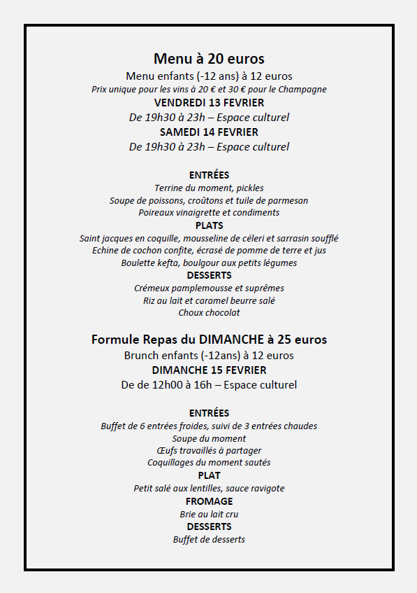 Le week-end des 13, 14 et 15 février 2026, le restaurant éphémère Di Ferran s'est installé à l'espace culturel pour proposer une prestation de qualité aux habitants du village.