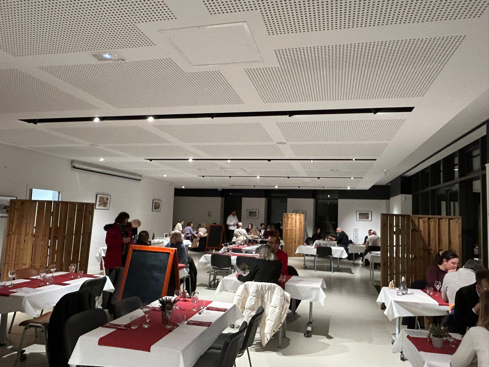 La salle, aménagée comme un vrai restaurant, a accueilli trois services (vendredi soir, samedi soir et dimanche midi) de 60 convives qui ont pu choisir leur menu parmi un ensemble de plats de qualité.